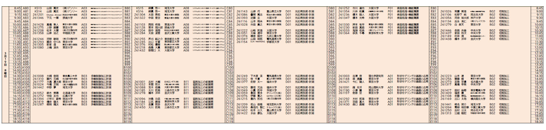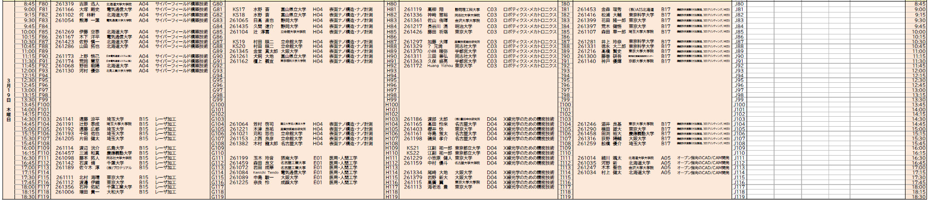 三日目プログラム(暫定版)A室〜E室 F室〜J室