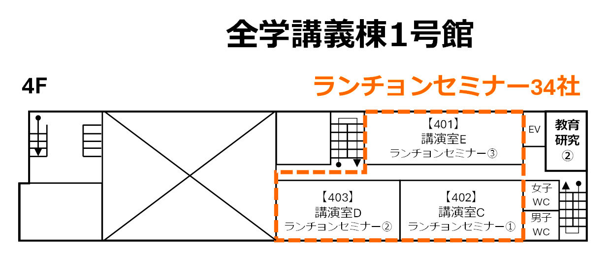 | 会場:全学講義棟1号館 4F 講演室C、講演室D、講演室E |
