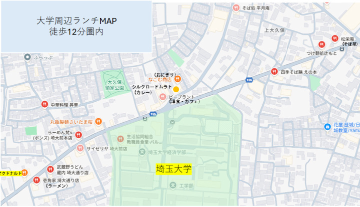 大学周辺のランチMAP(徒歩12分圏内のレストランを紹介)